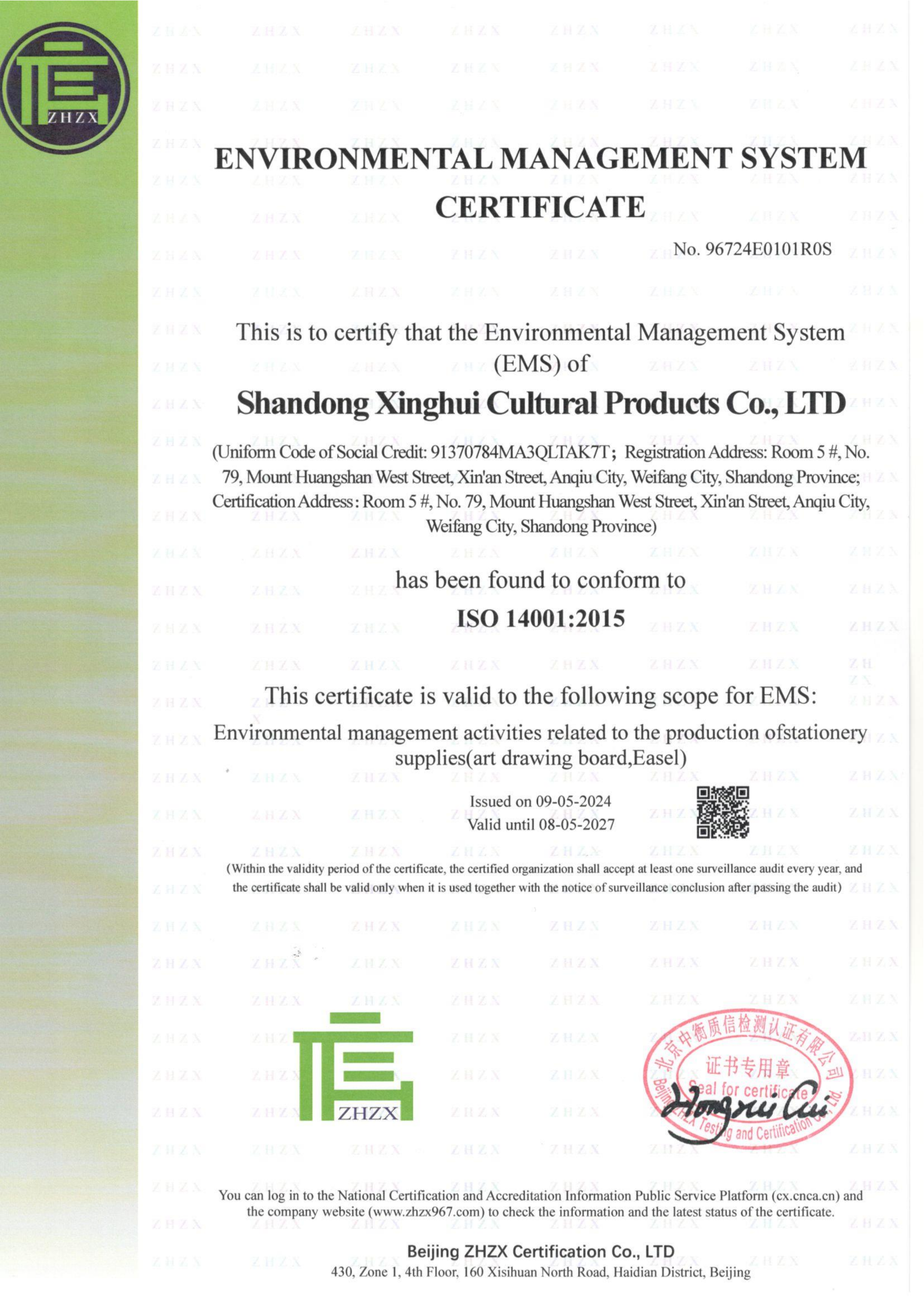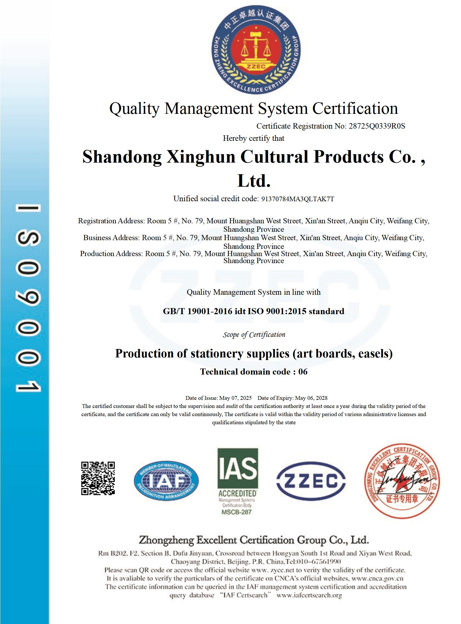 Shandong Xinghui Wooden Products Co.,Ltd ha pasado sucesivamente la certificación del sistema de gestión de calidad ISO9001, la certificación del sistema de gestión ambiental ISO14001, la certificación del sistema de gestión de salud y seguridad ocupacional ISO45001, y la certificación FSC Forest - cadena de custodia. También es una unidad miembro de la asociación de juguetes de China.