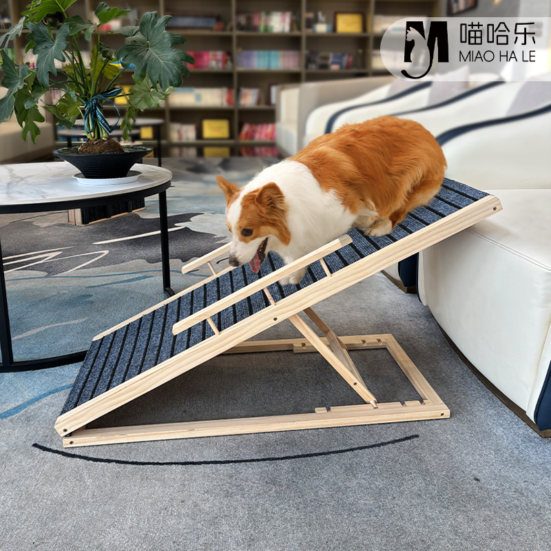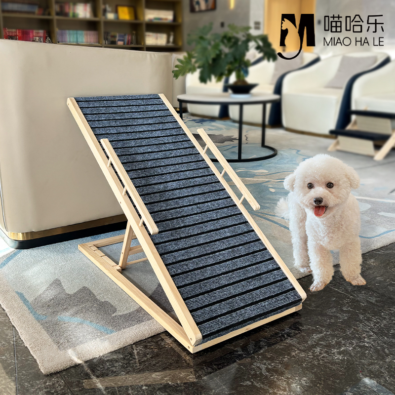 Pet climbing ladder, material: solid pine wood & carpet XH-PL001: 70*35cm,without guardrail, XH-PL002: 70*35cm,with guardrail, XH-PL003: 100*40cm,without guardrail, XH-PL004: 100*40cm,with guardrail.