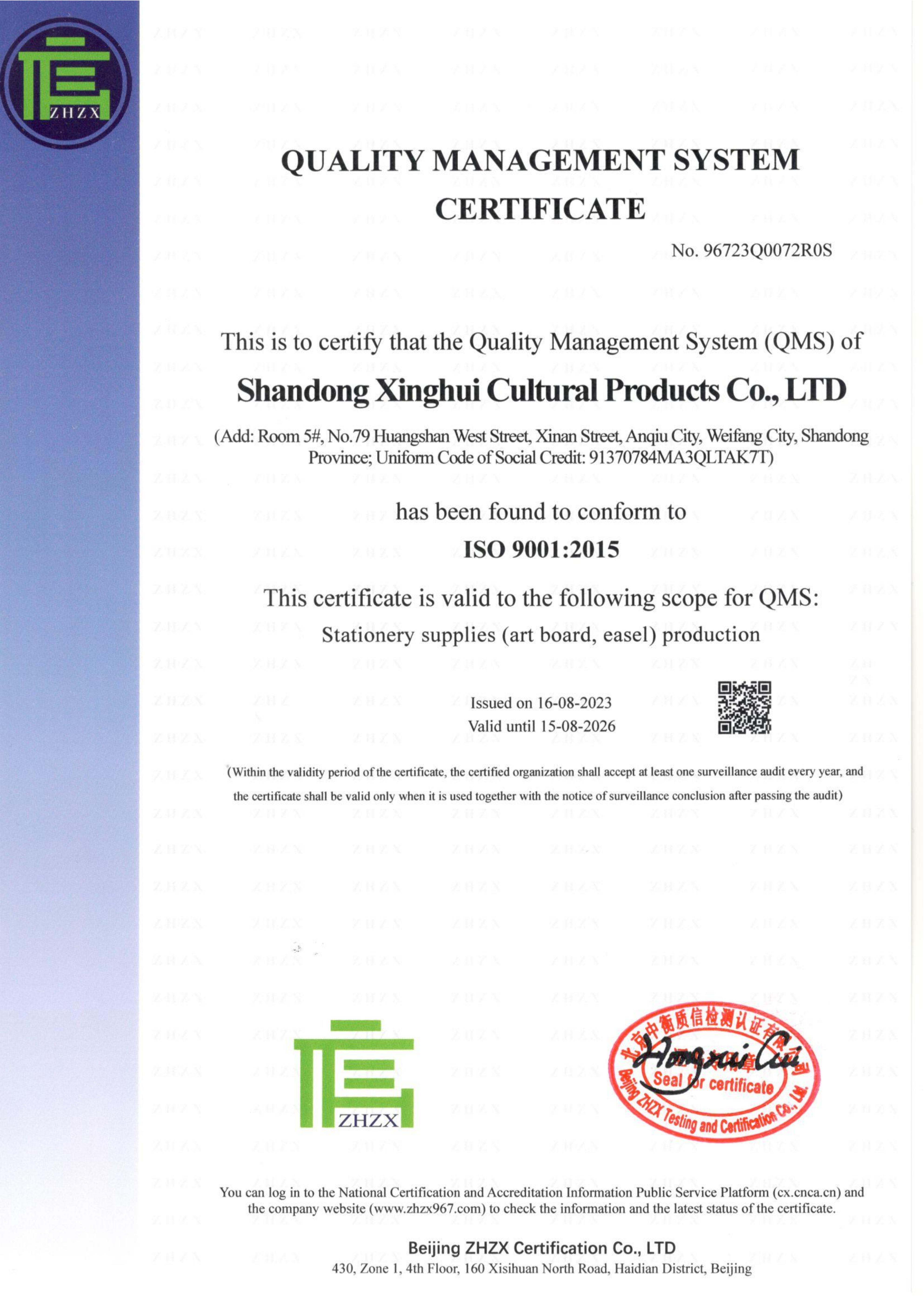 Shandong Xinghui wooden Products Co., Ltd. is located in Weifang City, Shandong Province, known as the "Kite Capital". Founded in 2019, it is a key unit for investment promotion in Anqiu City and a comprehensive modern enterprise integrating R&D, design, production, sales and import and export trade. Shandong Xinghui Wooden Products Co.,Ltd has successively passed the ISO9001 Quality Management System Certification, ISO14001 Environmental Management System Certification, ISO45001 Occupational Health and Safety Management System Certification, and FSC Forest - Chain of Custody Certification. It is also a member unit of the China Toy Association. The company currently has nearly a hundred advanced production facilities and implements a standardized and information-based management system, constantly keeping pace with The Times. The company has been continuously increasing its investment in the research and development of its own products and now holds a number of patented products as well as registered trademarks both at home and abroad. With craftsmanship, Xinghui people remain true to their original aspiration, carry forward the spirit of craftsmanship, and devote themselves to making every product with care, striving to build Xinghui into the most professional supplier of art materials in the country.