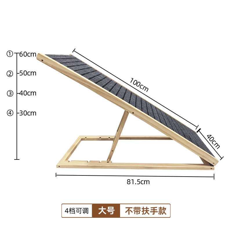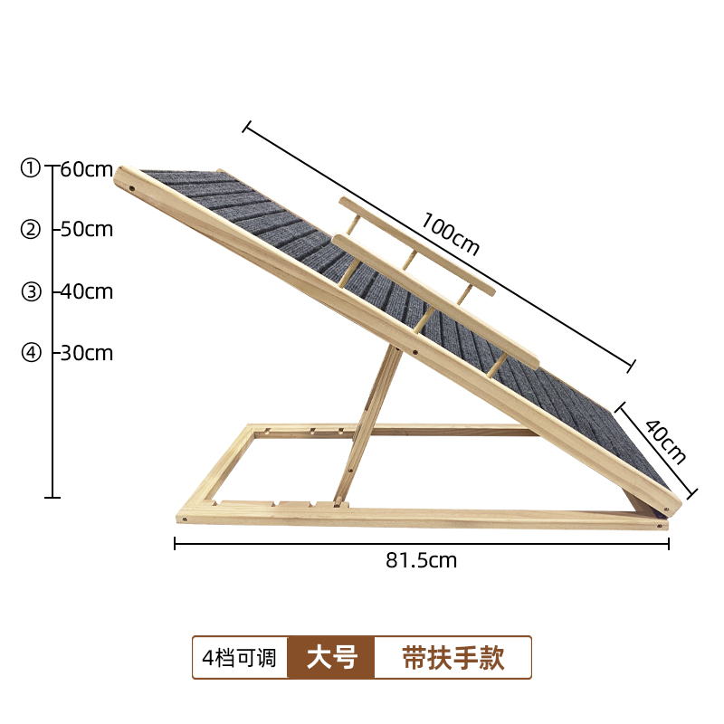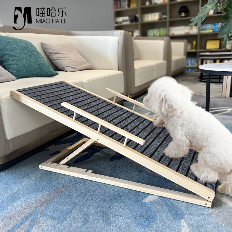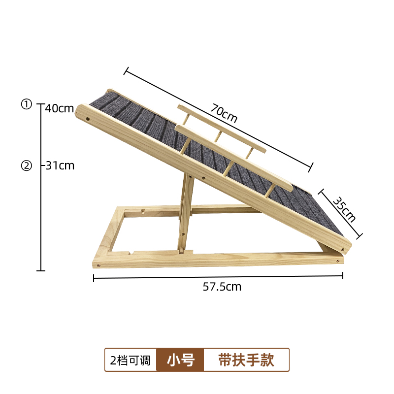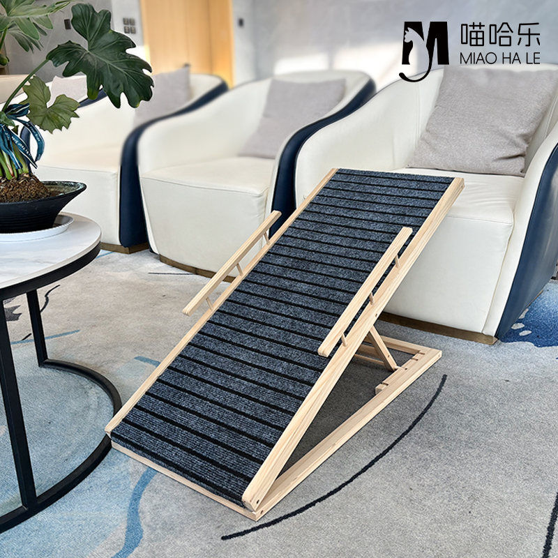 Pet climbing ladder, material: solid pine wood & carpet XH-PL001: 70*35cm,without guardrail, XH-PL002: 70*35cm,with guardrail, XH-PL003: 100*40cm,without guardrail, XH-PL004: 100*40cm,with guardrail.